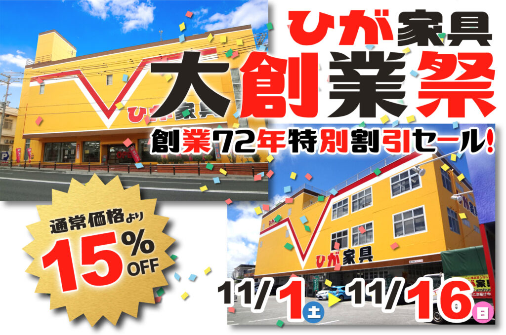 イベント情報 EVENT INFORMATION 2025.11.03 イベント ひが家具創業71周年特別企画! ストレスレス®チェア秋の大商談会 2025.10.31 イベント 創業72年特別割引セール!大創業祭! 2025.10.02 イベント ※終了しました 集まる場所が、好きになる。「リビングダイニングフェア」 2025.09.06 イベント ※終了しました 大人気企画『衝撃の20日間』!! もっと見る ブログ BLOG 2025.10.10 お知らせ 接客スタッフ募集(北谷店) 2025.08.12 お知らせ 接客スタッフ募集(与那原店) 2024.07.05 商品紹介 長時間座っても腰への負担が少ないソファ! 2023.07.15 商品紹介 昔ながらの学習机セット! もっと見る