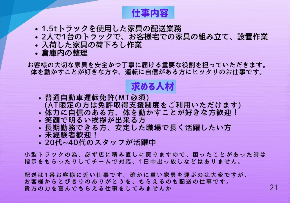弊社では、配送スタッフを募集しております。