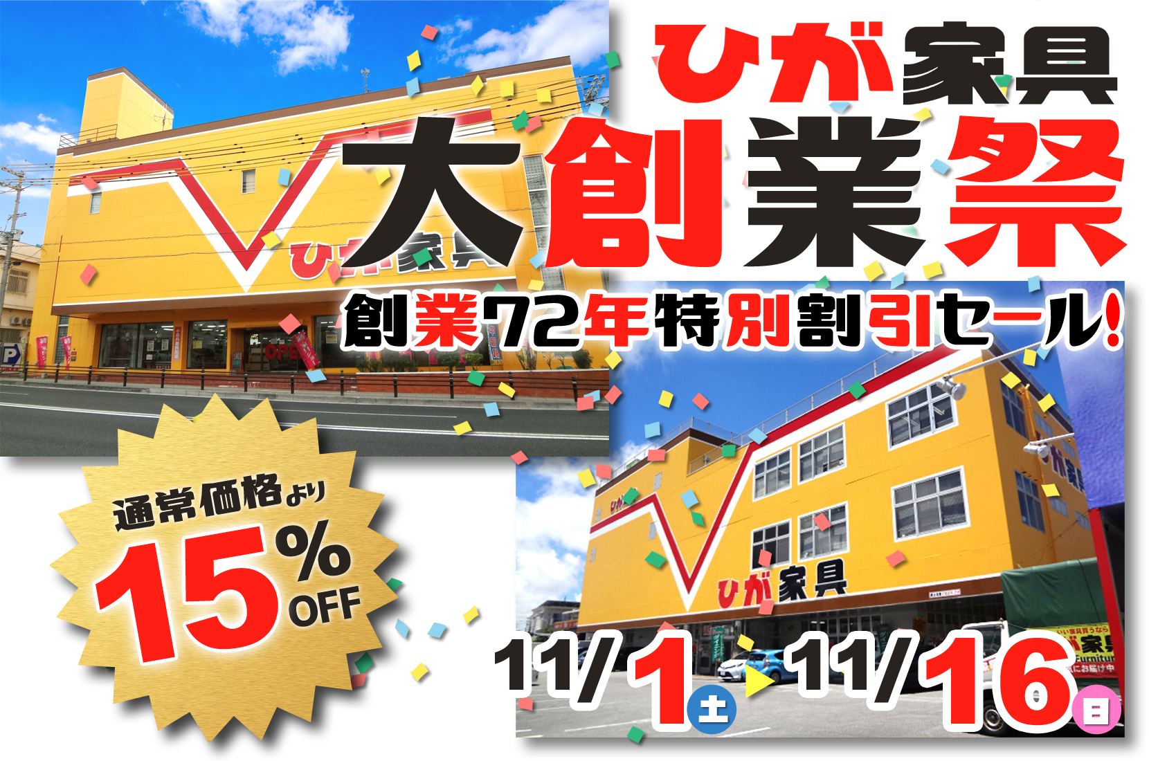 カテゴリー イベント 2025.10.31 イベント 創業72年特別割引セール!大創業祭! 2025.10.02 イベント ※終了しました 集まる場所が、好きになる。「リビングダイニングフェア」 2025.09.06 イベント ※終了しました 大人気企画『衝撃の20日間』!! 2025.09.04 イベント ※終了しました フランスベッド 工場直送フェア in 北谷 2025.08.02 イベント ※終了しました 本気の総決算!【大・大・大・大決算セール!!】 2025.07.30 イベント ※終了しました 家具の端材を利用してボールペンを作ろう! 2025.07.14 イベント ※終了しました 充実生活応援宣言!夏のBIGバーゲン 第2弾! 2025.06.22 イベント ※終了しました 充実生活応援宣言!夏のBIGバーゲン! 1 / 2312345...1020...»最後 »