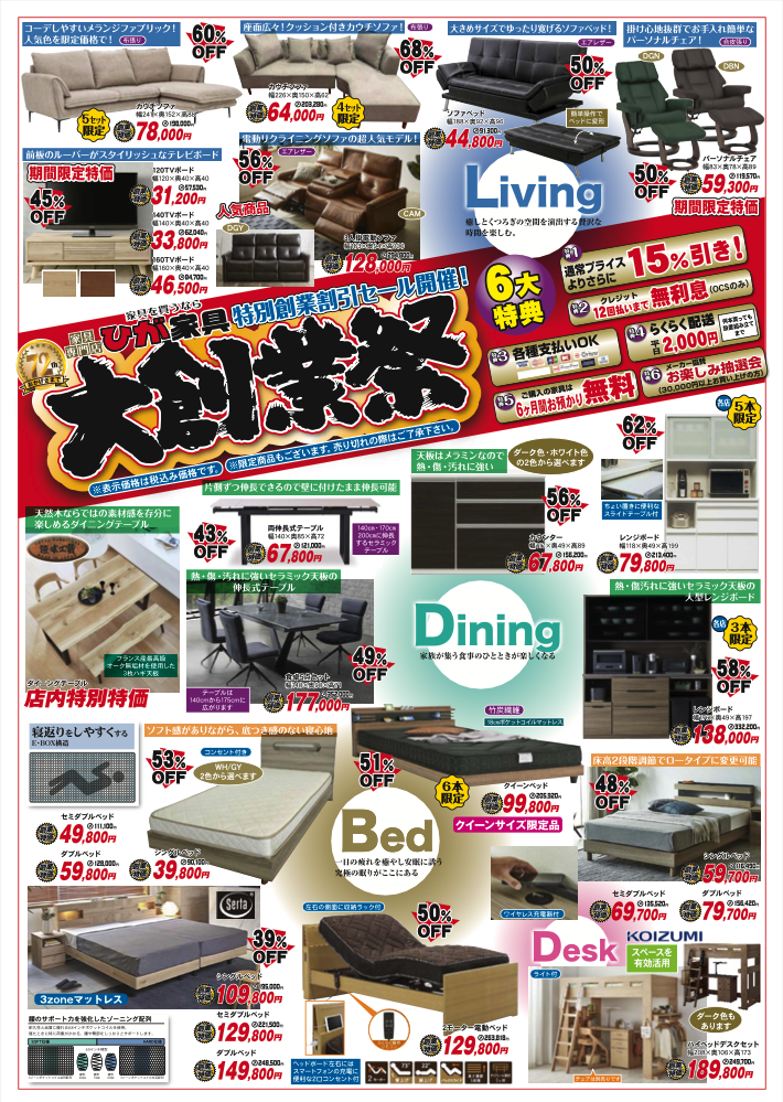 家具専門店【ひが家具】創業72周年!感謝を込めて特典満載で開催!!