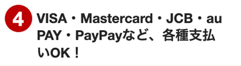 | クレジットカード | ・VISA ・マスター ・アメックス ・ダイナース ・JCB ・その他 |