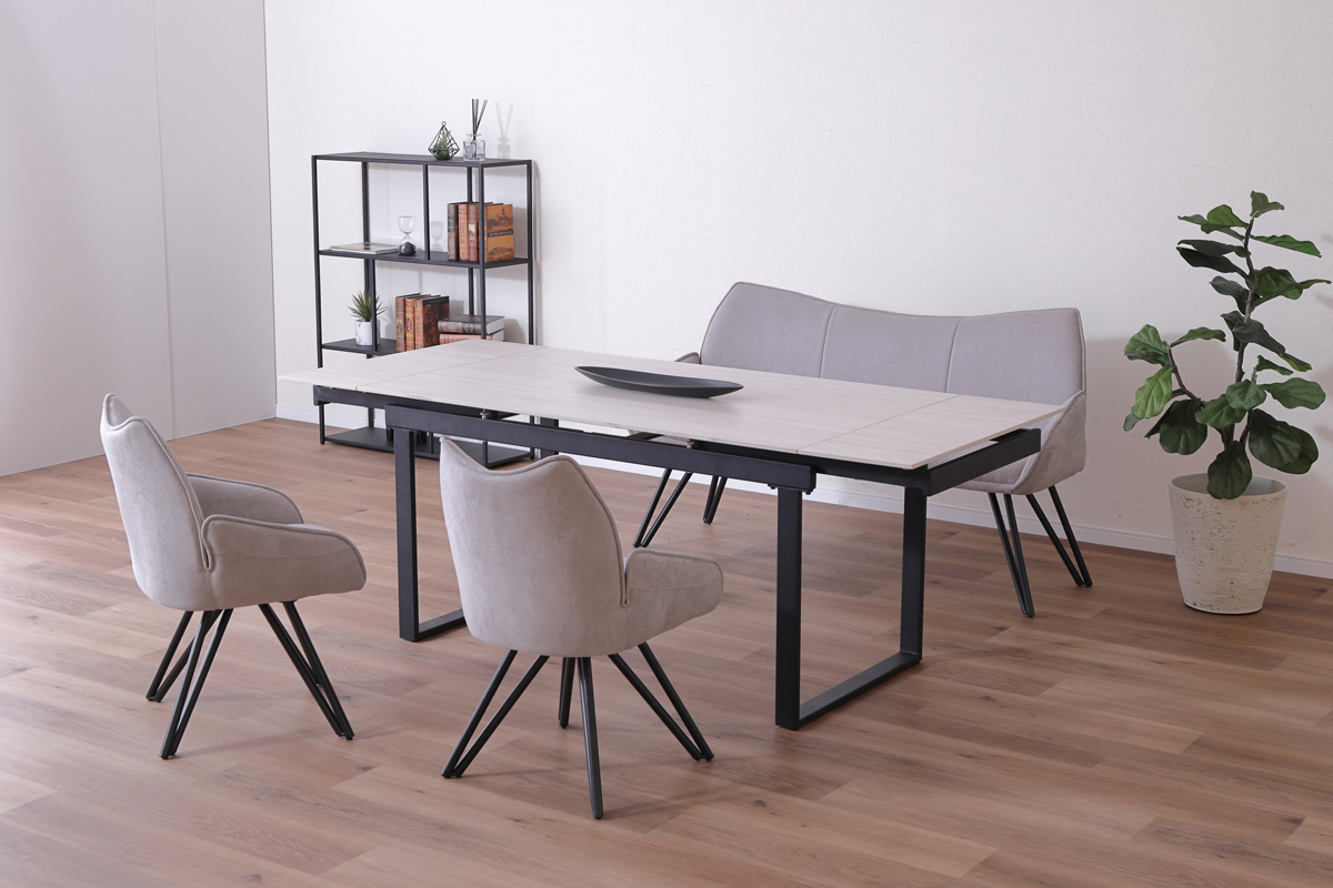 耐熱性・耐摩耗性・防水性に優れた高級感のあるスタイリッシュな雰囲気のセラミックダイニングテーブル。