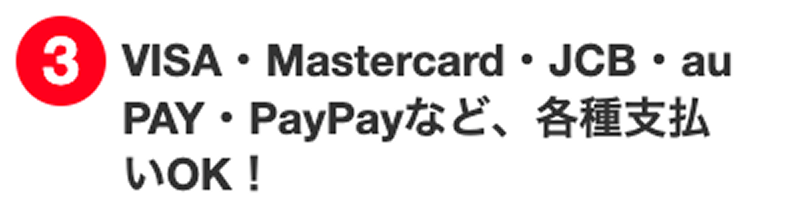 | クレジットカード | ・VISA ・マスター ・アメックス ・ダイナース ・JCB ・その他 |